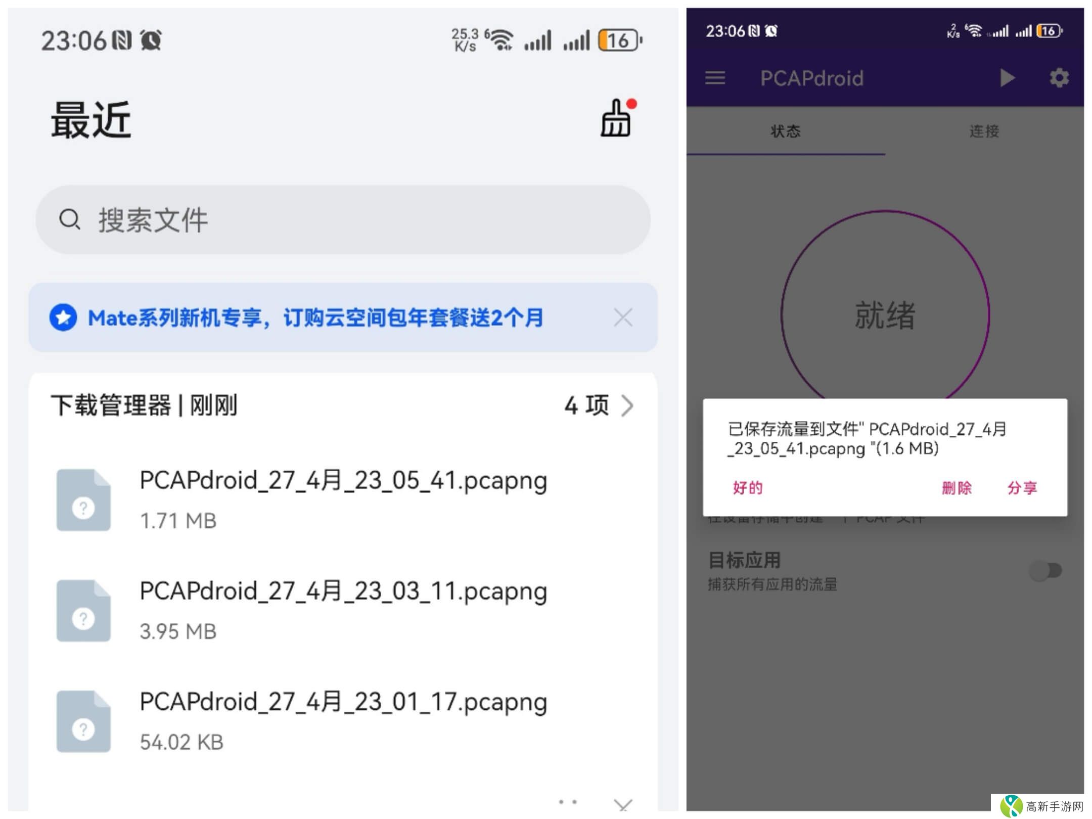 PCAP文件:直接以PCAP格式文件存储到手机;