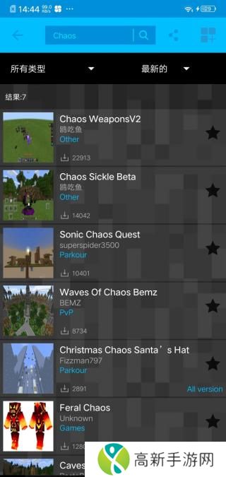 4、如果混沌模组没有用就把它的资源包和行为包放到最上面。你学会了吗?第一张图是混沌模组搜在这个软件里搜索Chaos第一个。