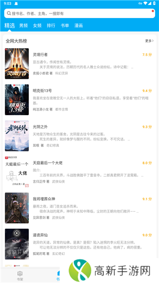 小说笔趣阁app使用说明:1、在小说笔趣阁app内打开书城即可查看精选、男频、女频、排行、书单、漫画等不同分类的小说和漫画资源;