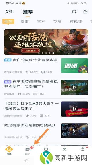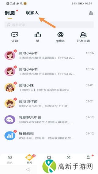 王者营地怎么查别人战绩1、打开王者营地最新版,点击“聊天”。