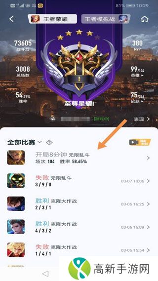 5、在这里就可以查看该好友的全部战绩了。