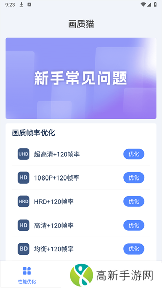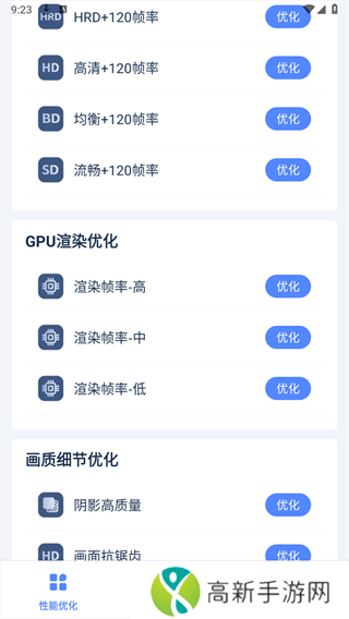 2、用户可以在性能优化界面进行画质模式、帧数、GPU渲染帧数、画质细节优化、音质优化的修改
