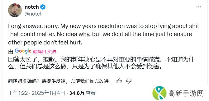 虽然有些人对Notch宣布的认真程度表示怀疑,但他仍然坚称这是真的。在另一篇帖子中,Persson告诉他的粉丝,“我……非常重视做一个信守诺言的人。”