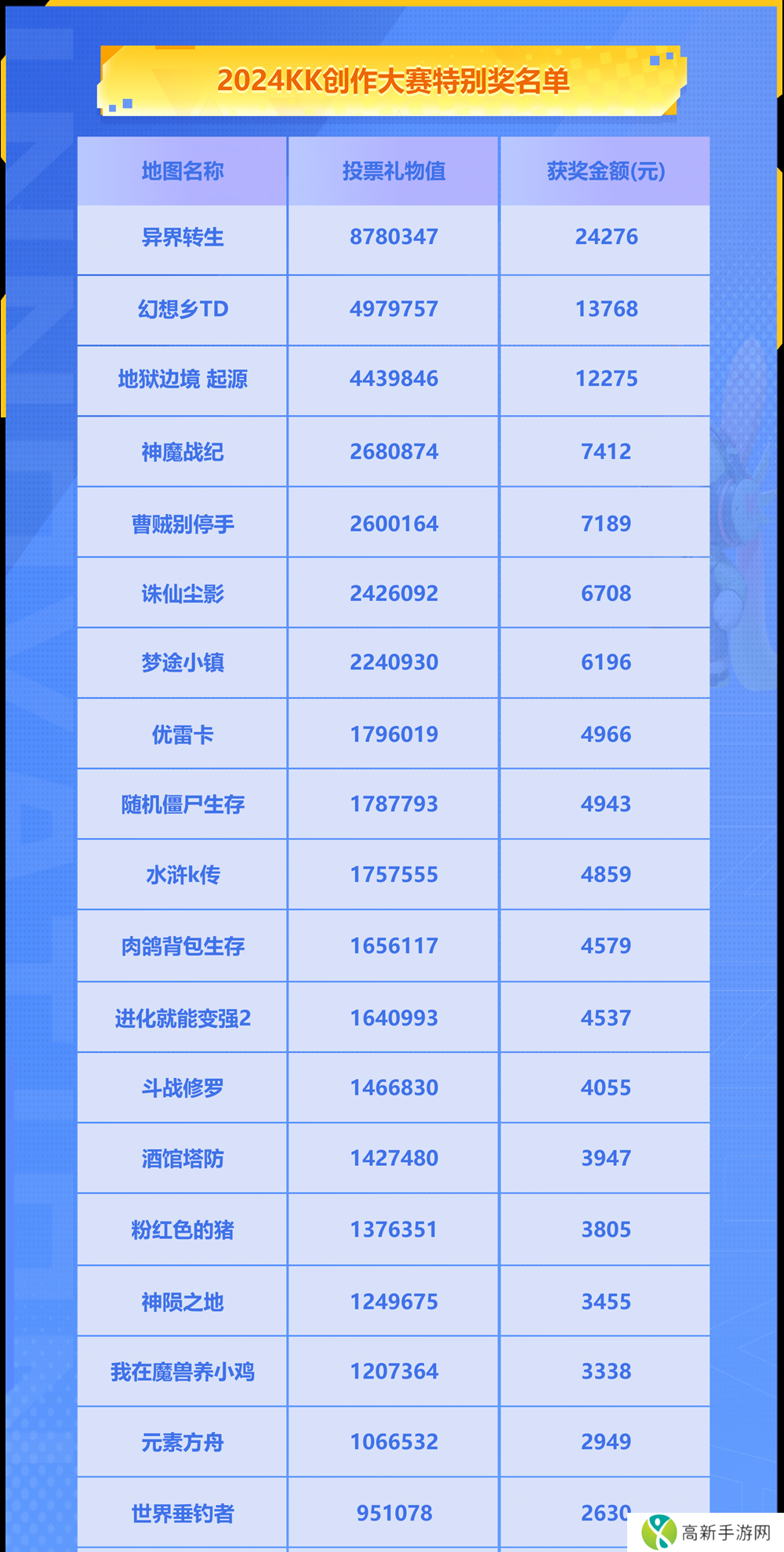 经过激烈角逐,KK官方对战平台地图创作大赛的最终获奖名单正式公布,让我们向以下地图创作者致以热烈的祝贺!
