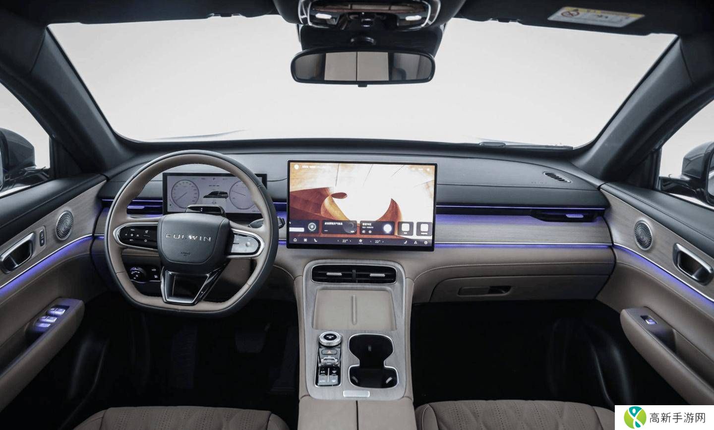 进入车内,奇瑞风云T8的座舱设计同样令人眼前一亮。它提供了5座和7座两种布局,以满足不同消费者的需求。中控台上配备了一块15.6英寸、分辨率为2.5K的高清屏幕,搭载了高通骁龙8155芯片,并匹配了Lion5.0 AI智慧座舱系统。内饰材质采用了双色搭配,并融入了木纹饰板和256色无级炫彩氛围灯,营造出豪华而舒适的驾乘氛围。