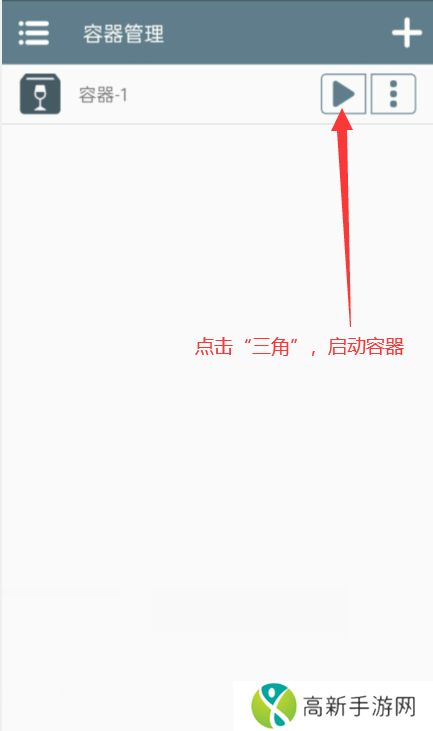 3、启动器安装完毕后,点击右上角“+”号,添加容器;;