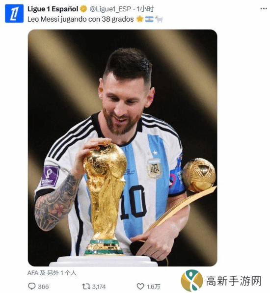 对此,法甲西语官推回应,并晒出了一张梅西夺得卡塔尔世界杯的照片,写道:“梅西在38度高温下踢球”,**诛心了属于是。