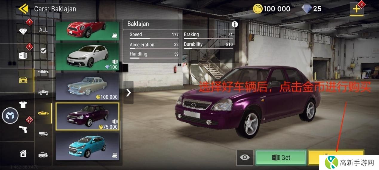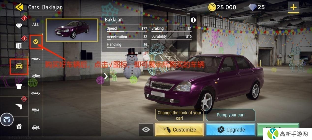 3、购买好车辆后,点击√图标,即可展示所购买的车辆。