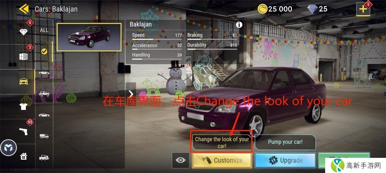 4、在车库界面,点击Changethelookofyourcar(改变你的汽车外观)。