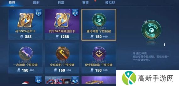 前往 定制-个性按键 点击【购买获取】或者 商城-特惠 直接购买4款个性按键。更新后首周限时8折,价格150点券。之后恢复统一定价188点券。