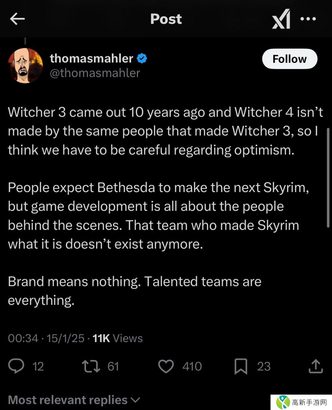 多次公开批评DEI和**正确的《奥日》游戏总监Thomas Mahler,谈到了自己对《巫师4》的看法。
