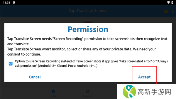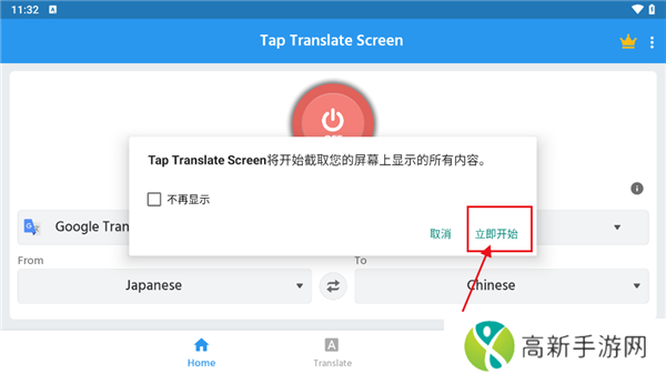 4、然后会提示该软件需要截取您的屏幕内容,点击立即开始,进入屏幕翻译状态;