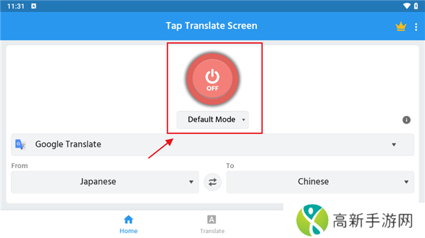 7、进入游戏之后页面是日语的,点击圆圈图标就可以一键将屏幕上的语言汉化了哦。