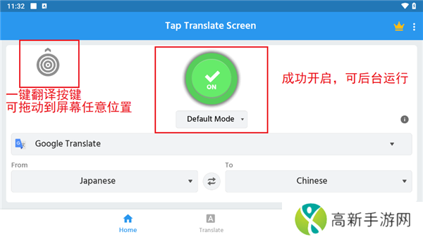 1、下载并打开EZ屏幕翻译器,在主页面选择将日语翻译为中文,Japanse to Chinese;