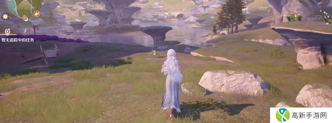 传送到小石树田村的村居岔路,落地之后向南看,在一处河边技能找到钓点。