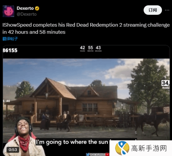 近日,美国知名网红IShowSpeed“甲亢哥”开启了《荒野大镖客:救赎2》的马拉松直播(不通关不下播),最终以42小时55分40秒完成了这次挑战。