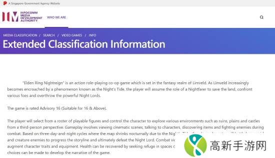 中度暴力16+!《艾尔登法环:黑夜君临》在新加坡获评级