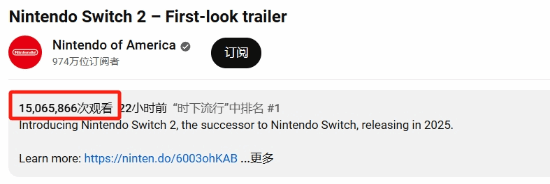 昨日晚间,任天堂正式公布了备受期待的任天堂Switch后续机型——Switch 2的预告片,瞬间引爆了全球游戏玩家的关注。截至目前,任天堂美国官方账号发布的该预告片播放量已超过1500万次,而任天堂日本官方账号的播放量也突破了500万次,累计播放量超越两千万,足见玩家们对这款新主机的期待之高。
