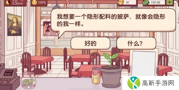 隐形人隐形时来了两次,来的第二次要求完美披萨,不要被差评,这样他第三次来就会穿魔术师的衣服,完成第三次的考验,就会获得大开眼界的成就:成功拆穿魔术师的身份
