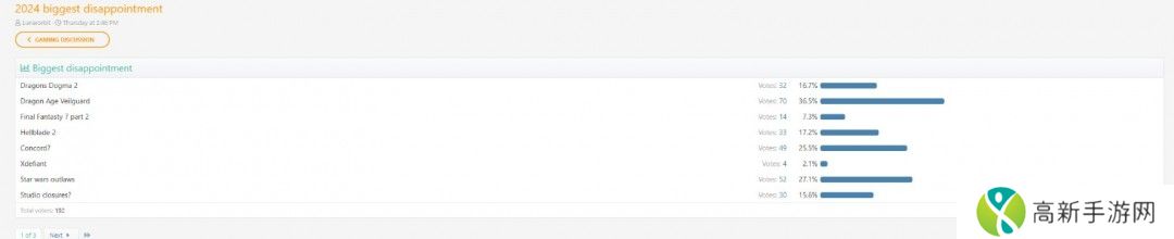 更能反应《龙腾世纪:影障守护者》对玩家伤害最深的莫过于最近的一次玩家投票,《龙腾世纪:影障守护者》成功击败《星鸣特工》、《星球大战:亡命之徒》成为2024年最令人失望游戏。