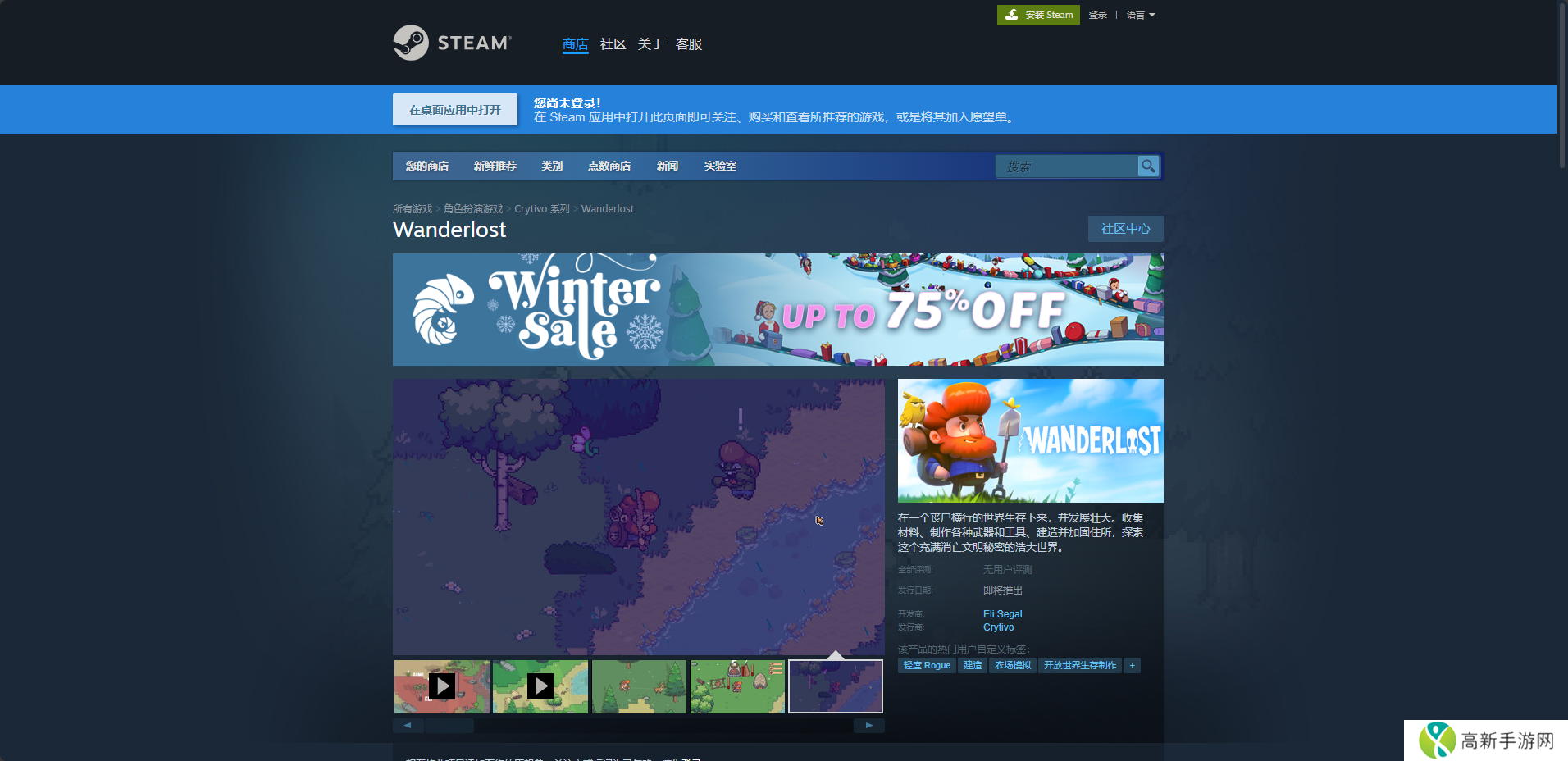 《Wanderlost》是一款开放世界制作生存游戏,而这款游戏的下载网址就是购买平台的购买页面,比如Steam版就是在购买页面购买之后,点击页面中的马上开玩就可以开始下载了。