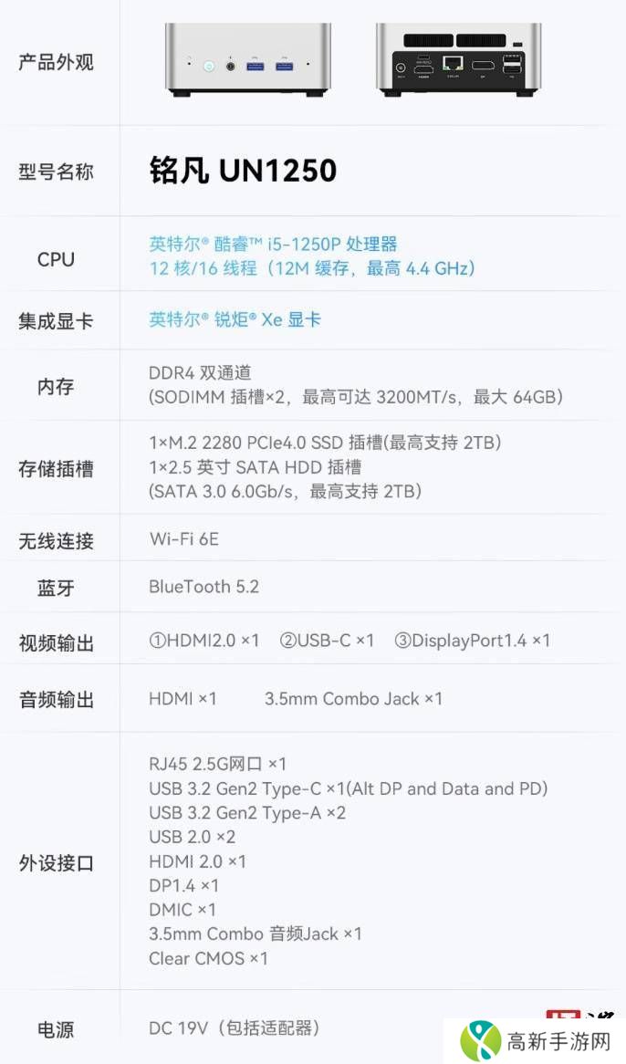 从外观设计上看,这款迷你主机采用了简洁的极光银配色,体积小巧,仅为0.9升,尺寸为127 x 54 x 127.5毫米,非常适合空间有限的用户或作为便携设备使用。其内部配置了强大的12核心16线程英特尔酷睿i5-1250P处理器,用户可根据需要选择16GB或32GB的DDR4 RAM,以及500GB或1TB的PCIe 4.0 SSD。