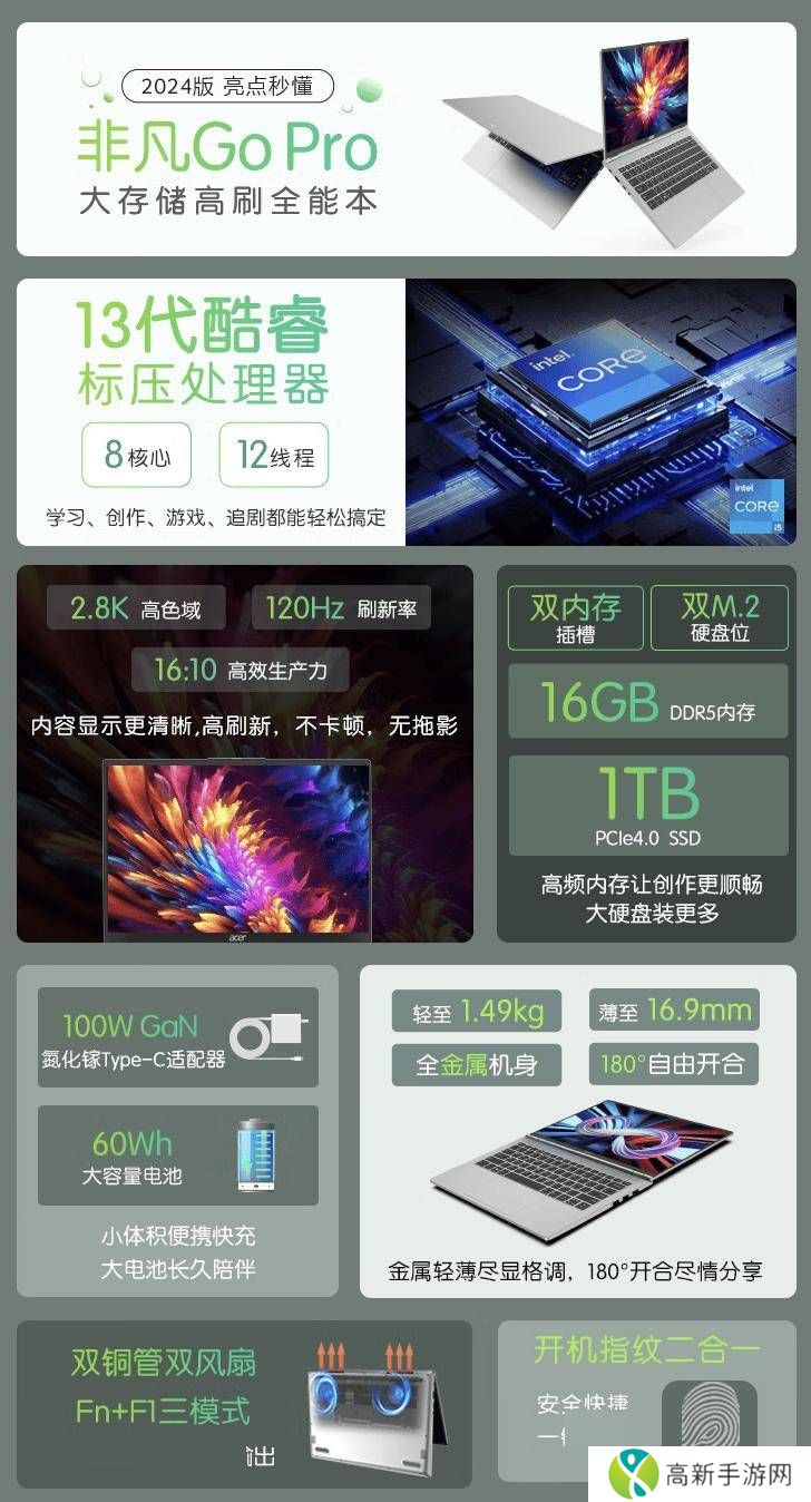 这款笔记本还内置了60Wh的大容量电池,能够满足用户长时间的使用需求。无论是日常办公还是娱乐休闲,都能轻松应对。综合来看,这款新版本的“非凡 Go Pro”笔记本无疑是一款性价比极高的选择,值得广大用户关注。
