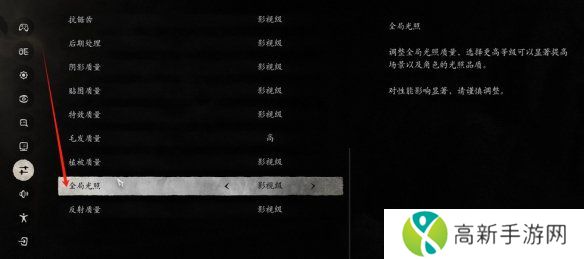 4、我们可以根据个人习惯和游玩风来选择适合自己的全局光照,过高的全局光照会降低性能,所以建议谨慎调整。