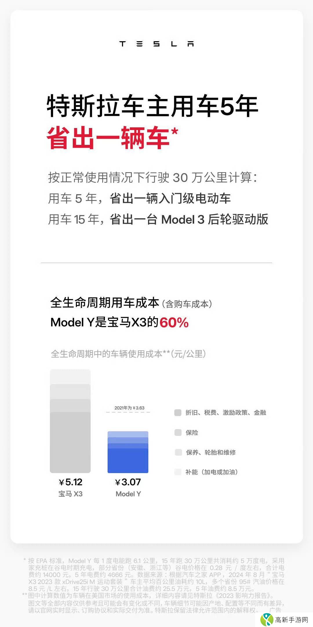 陶琳进一步强调,根据特斯拉《2023年影响力报告》的数据,Model Y车型的全生命周期拥车成本相较于同级别燃油车有着显著的降低,仅为后者的60%。她分享的图片数据显示,在正常使用情况下行驶30万公里,特斯拉车主在用车5年后便能省出一辆入门级电动车的费用,而用车15年后,则可省出一台Model 3后轮驱动版的费用。
