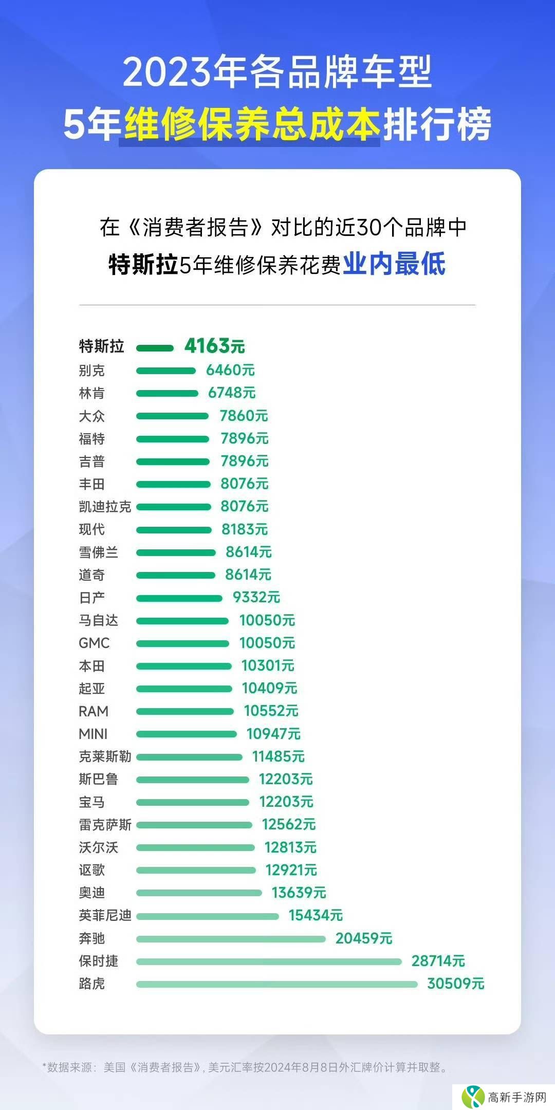 特斯拉近日再度引发了市场关注,其副总裁陶琳通过社交媒体平台分享了一系列数据,揭示了特斯拉在养护成本和拥车成本方面的显著优势。她引用了《消费者报告》今年早些时候发布的数据,指出特斯拉在五年养护总成本方面表现优异,位居所有参评品牌之首,平均五年养护成本仅为4163元人民币。