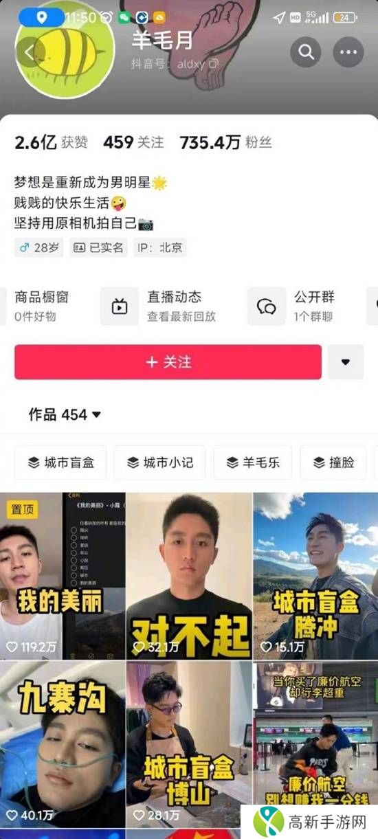 12月12日“羊毛月”的抖音账号粉丝已掉至735万,最新视频仍是11月23日的“对不起”道歉视频。