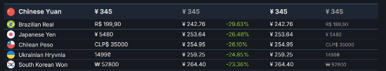 Steam后台数据显示,《最后生还者2:复刻版》日区和韩区的价格分别为253元和264元,比国区价格低了20%以上。英区和美区的价格分别为359元和366元,与国区价格相当。很多玩家感叹:索尼这是把国区也当成高价区了?