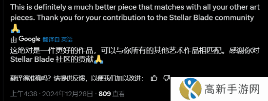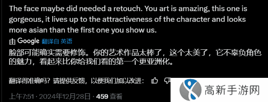 而就在该图发布几小时后,这名设计师在《剑星》官推下方再度发布了一张伊芙的插画,这次伊芙的五官变得精美了许多,线条也更加柔和且具有美感。