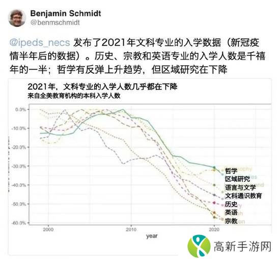 这一现象并非孤立存在,经济合作与发展组织的五分之四的成员国报告显示,过去10年人文学科的入学人数都在下降。,从2012年到2020年,人文学位的毕业生人数下降了近30%。