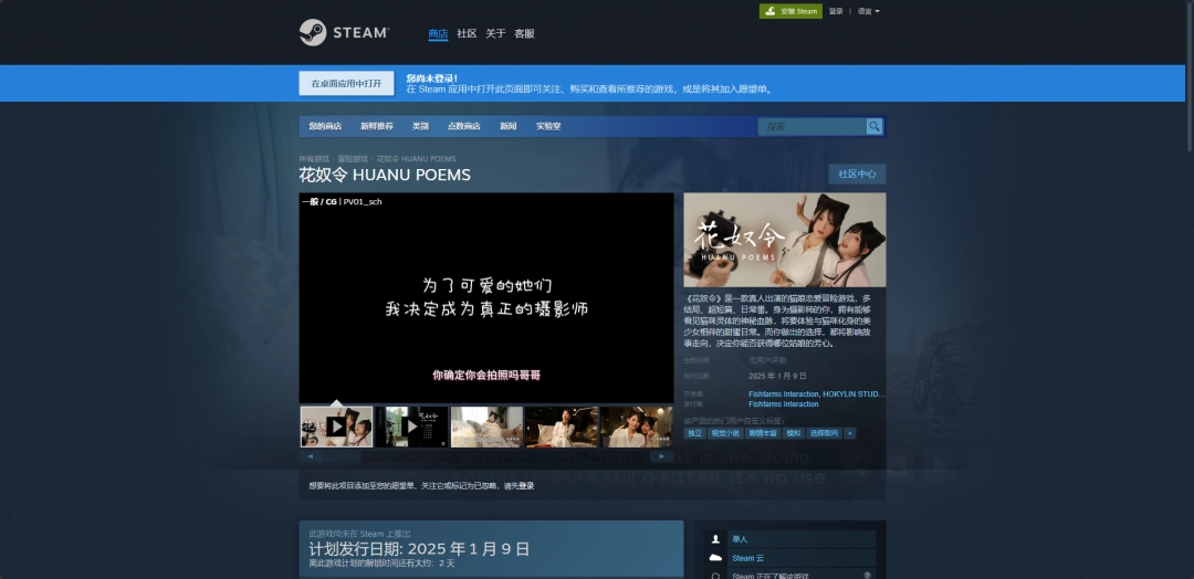 Steam平台购买链接:https://store.steampowered.com/app/3196550/_HUANU_POEMS/。