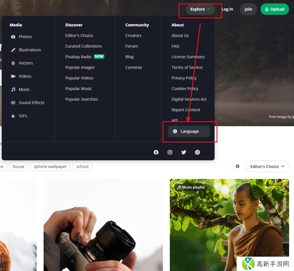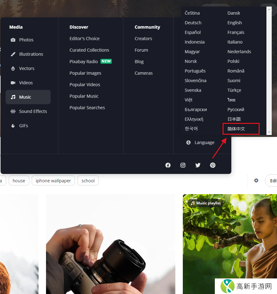 pixabay设置中文:
