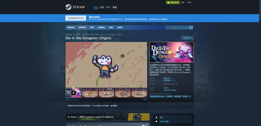 《骰死地牢》是一款回合制轻度Rogue牌组构建类游戏,而这款游戏的官网地址就是Steam平台的购买页面,进入到这个游戏的购买页面基本上就能知道所有这款游戏的信息。