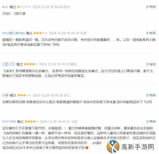 给出差评的观众则质疑主题和“误杀”有何关系,此外影片剧情有些俗套,毫无创新,许多网友指出和《消失的她》套路非常相似。