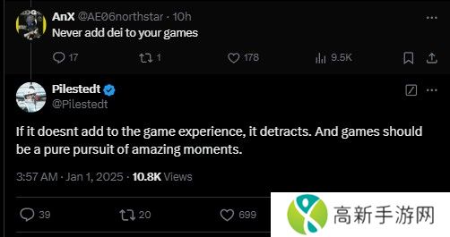 在讨论箭头工作室的下个游戏时,Johan Pilestedt回复了一名用户,后者表示希望永远不要加入DEI元素。Johan回复说:“如果它(DEI)不能充实游戏体验,那么他就会有损游戏体验。游戏应该纯粹地追逐惊人时刻。”