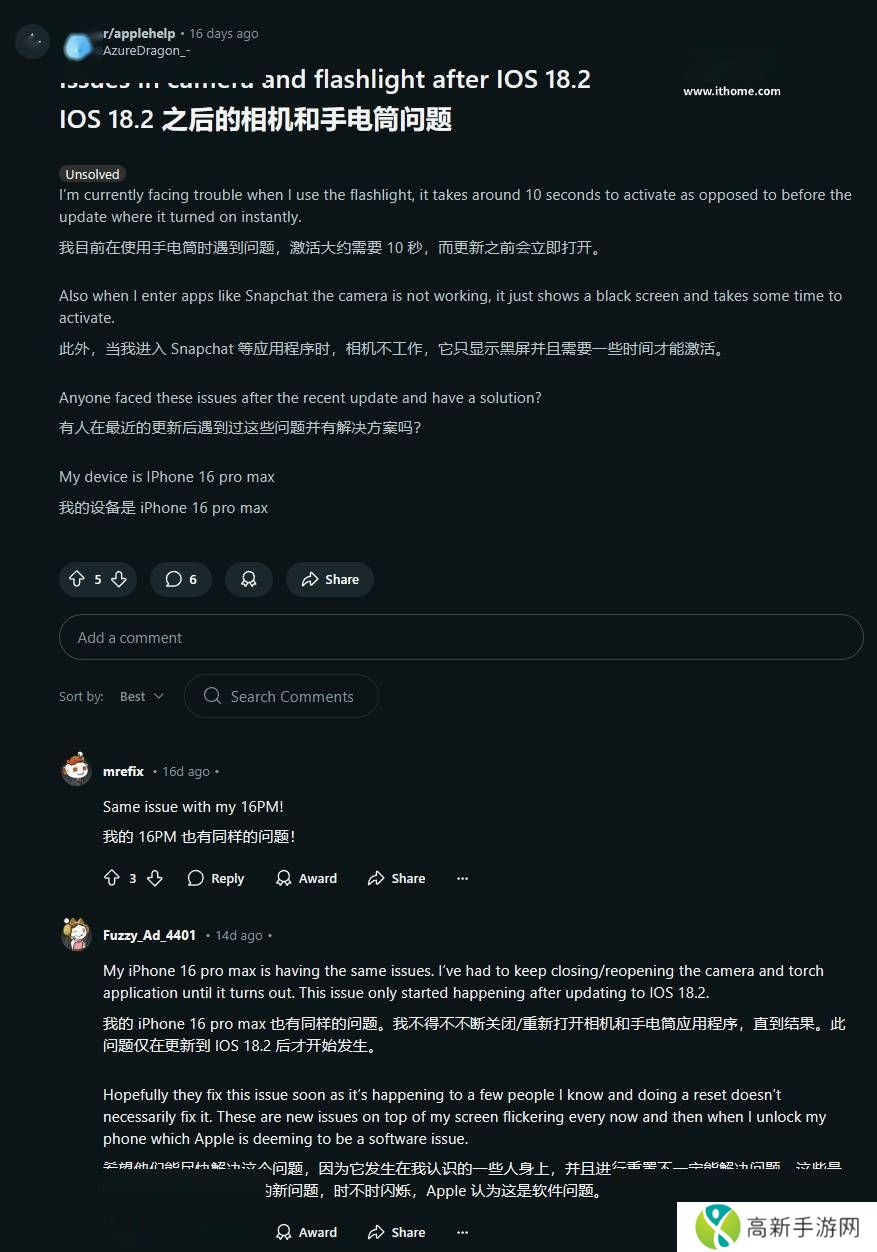 手电筒功能的问题同样引起了用户的广泛关注。部分用户表示,更新后手电筒的响应速度显著变慢,有时甚至需要等待长达10秒才能点亮。一位用户详细描述了这一变化:“以前手电筒是瞬间点亮的,现在却要等上好几秒。而且,在使用Snapchat等应用时,相机也会变成黑屏,需要等待一段时间才能恢复使用。”