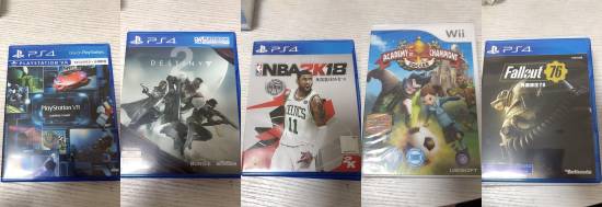 根据他晒出的图片来看,商家寄来的5张游戏有PS4上的《NBA 2K18》、《辐射76》、《命运2》,Wii上的《冠军学院足球》,和一款像是PS VR试玩Demo的游戏。看似游戏挺多,但都是很多年前的老游戏,现在已经很不值钱。