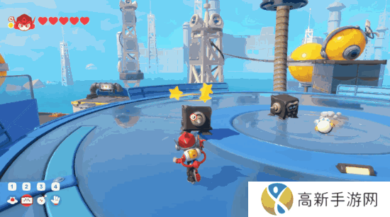当然,作为一个多人游戏,让玩家能够轻松享受合作的乐趣也是《泡姆泡姆》的优点之一。游戏设置的合作模式多种多样,除了同时击中机关,或一方给另一方垫脚这样的简单操作外,游戏里还有着诸如在同向前进的同时,轮流开盾阻挡射线,或是用“抓手”道具瞬间抓住对方丢出的道具这样考验配合的部分。这些谜题的难度大部分都不高,只有部分藏着额外奖励“贴纸”的地方,难度才会稍有上升。