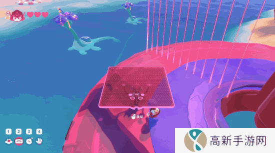 此外,或许是为了让玩家能够顺畅闯关,又或是为了增加合作的趣味,《泡姆泡姆》还做了些有意思的设计。以生命系统为例,玩家受伤后会掉落“爱心”,击中后它就会落回地面,变成可被玩家与队友拾取的状态。这就意味着玩家们不仅可以有策略的进行血量分配以渡过难关,也可以借此来互相整蛊,玩一些“节目效果”;如果玩家生命值归零,只要队友仍然存活,那么玩家就只需通过按键挣扎出包裹自己的泡泡,就可以立刻重返战场。