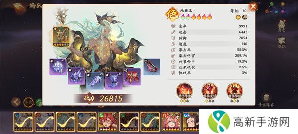 1、**:三彩最佳,没三彩也可用,主要作用就是给上减防 。法宝:有专属带专属,没专属带加伤害或者加效果命中的就行。天赋加点:暴击爆伤攻击,速度得调到第二出手,多出天赋点可点效果命中。