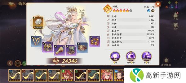 2、嫦娥:无需星级都行,作用挂加攻击buff,加点为攻击暴击爆伤, 速度要调到阵容内第一出手。法宝:送的专属。