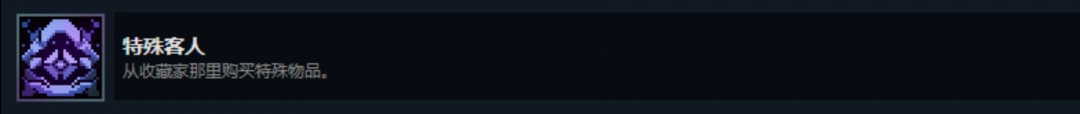 《小骨:英雄杀手》中的特殊成就是非常多的,特殊客人成就就是其中一个,而想要做这个成就只需要从收藏家那里购买特殊物品即可,也是往后难度,会解锁建筑物,然后在黑市里的收藏家会额外出售物品。