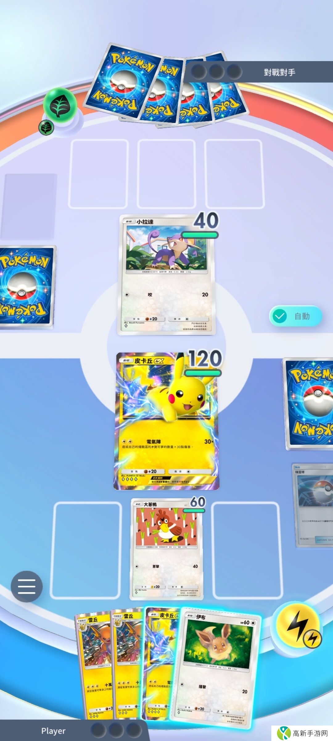 编制好牌组之后,就能开始和对手对战了。与现有的宝可梦卡牌相比,例如牌组的卡牌张数从60张变为20张,或是使用招式所需的能量变为从「能量区」附到宝可梦身上等,本作做了各种变更,让玩家能更轻松地在智慧型手机上游玩。