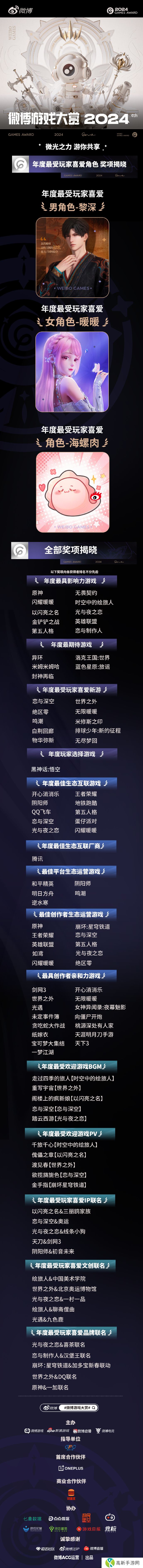 “微博游戏大赏2024”获奖游戏名单公布,《黑神话:悟空》荣获“年度玩家选择游戏”大奖。
