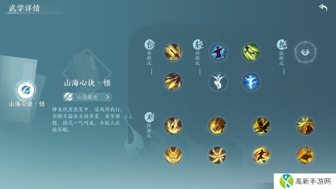 万灵山庄山海心诀:外功远程输出,可与动物和乘黄并肩作战,适应多种战斗。