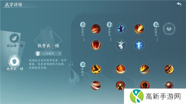 少林易筋经:内功近战心法,拥有强大控制能力与爆发伤害,可以反弹敌人伤害。